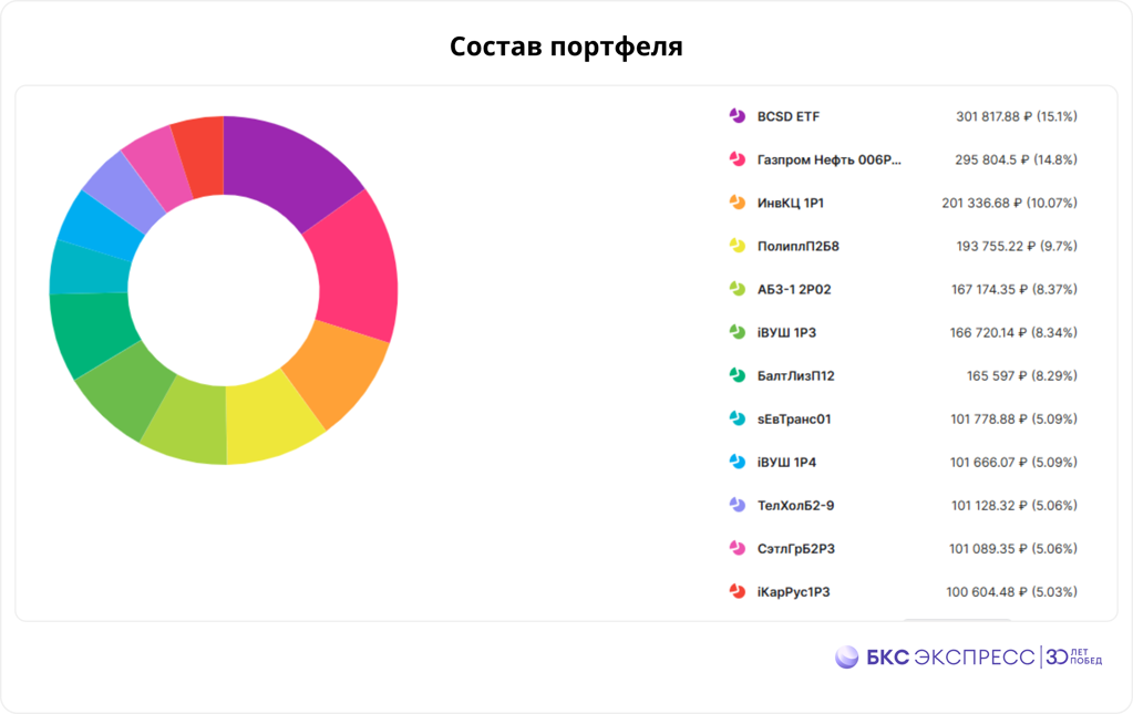 💰 Сумма портфеля — 2 млн руб. Индикативная доходность составляет около 23% годовых при ожидаемом ослаблении рубля на горизонте года.