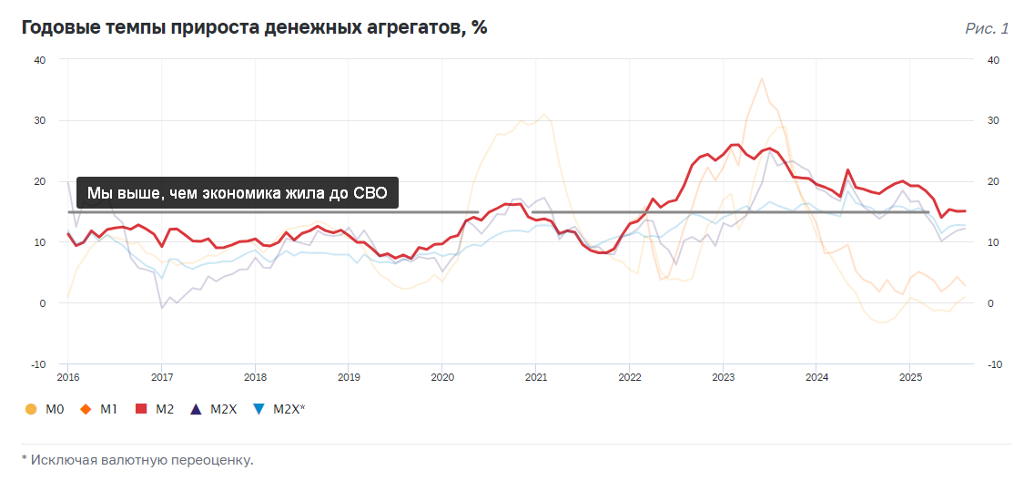 Оживилось кредитование, но только в корпоративном сегменте, население (пока) продолжает гасить долги. Денежная масса М2 выросла быстрее, чем кредиты (15% г/г против 10,1%), что указывает на главный источник — бюджетные расходы, а не рыночную активность. Это делает задачу ЦБ по снижению ставки...