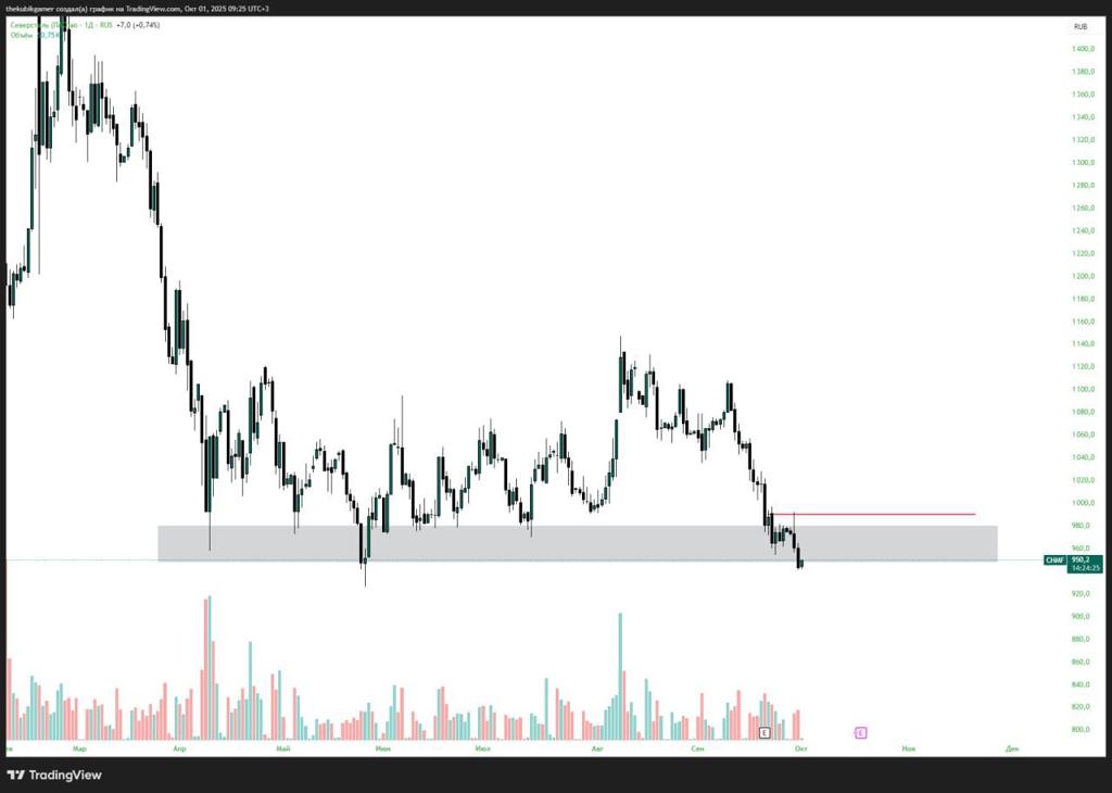Обратите внимание на то, что цена актива подошла к значимому диапазону поддержки откуда ранее цена показывала неоднократную позитивную реакцию, в случае если пойдет импульс на повышенном объеме от текущих отметок, то актив может стать потенциально интересным до отметок психологического сопротивления 1000, в случае пробоя отметки 940 вниз, рассмотрю шорт позицию до отметок 920 спекулятивно