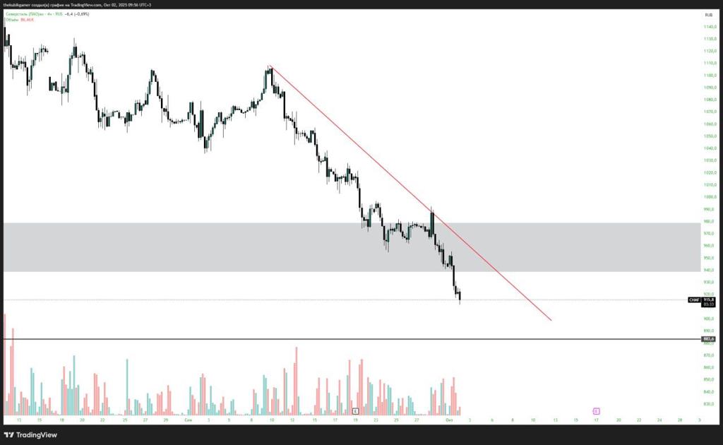 Если пойдет пробой 950 ниже, то актив будет выглядеть шортово, вплоть до отметок 920