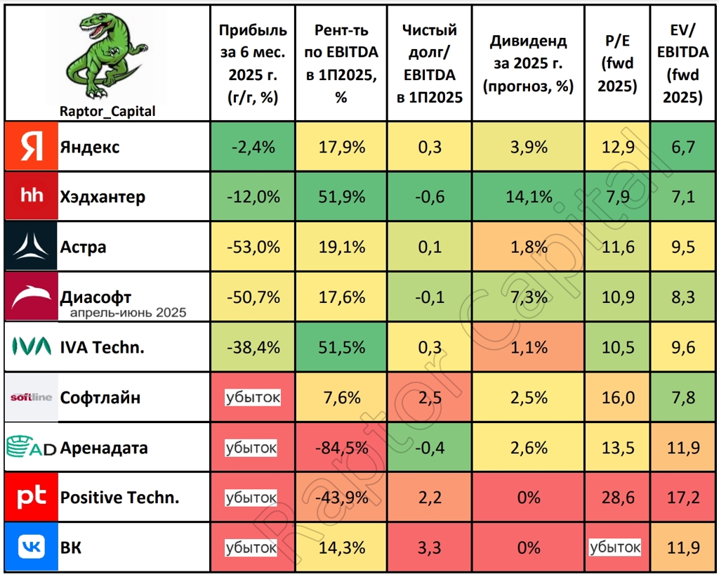 • В 2024 году 6 IT-компаний показали рост прибыли, смотрим на результаты 1 полугодия 2025 года – прибыль не выросла ни у одной компании, а число убыточных компаний выросло до 4-ёх. Сезонный 4 квартал мож...