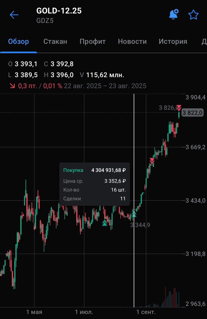 Спекули резко сбросили #Золото с исторических максимумов. Ожидаю, что около текущих произойдет выкуп и очередная волна продолжения восходящего движения 📈 $GDZ5 $GDH6 #PLZL $GLDRUBF