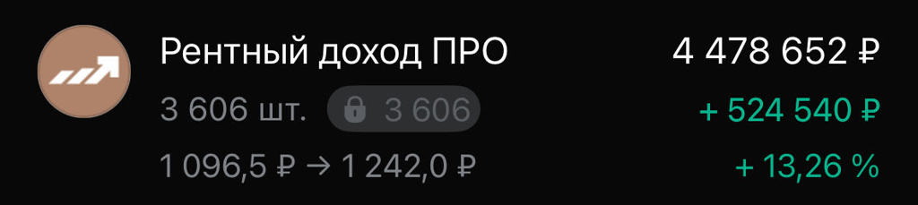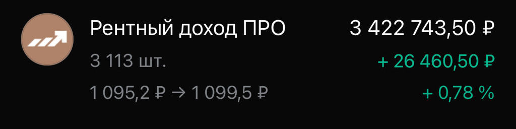 У Рентного дохода ПРО полёт нормальный! +13% за 20 дней на падающем рынке. Продавать и в мыслях нету. $RU000A103B62 $RU000A102N77 $RU000A1034U7 $RU000A108157 $RU000A104YX8 $RU000A108UH0 $RU000A104KU3 $RU000A1022Z1 $RU000A108VR7 $RU000A105328