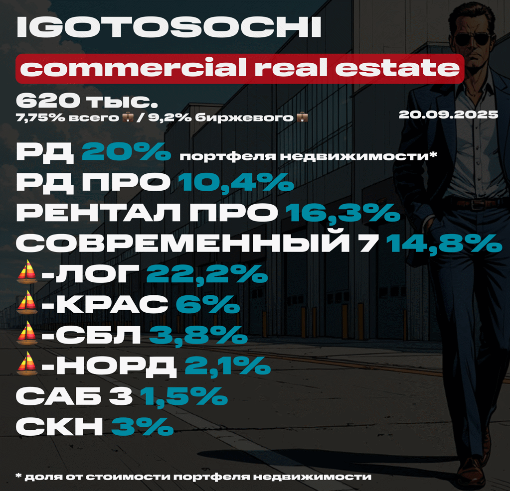 💼 Мой портфель недвижимости на 20 сентября 2025 (ЗПИФ). Состав, последние покупки, планы Что по железобетону? У меня за последние 2 недели есть существенные изменения в портфеле, так что пора посмотреть, как идут успехи у моей недвижимости и что внутри какие доли занимает, а также обдумал планы на ближайшее будущее. Размер ЗПИФн-портфеля составляет 620 тысяч рублей, и в нём два новых фонда. Напоминаю, что летом я собрал основные ЗПИФы недвижки в крутую сводную таблицу и продолжаю её ковырять....