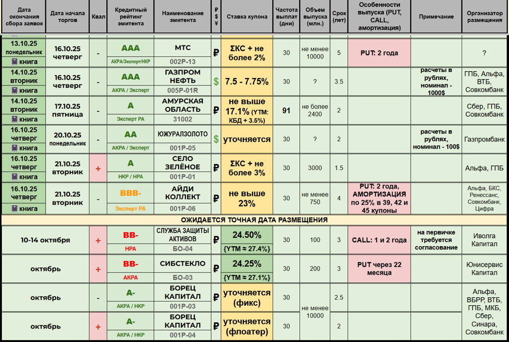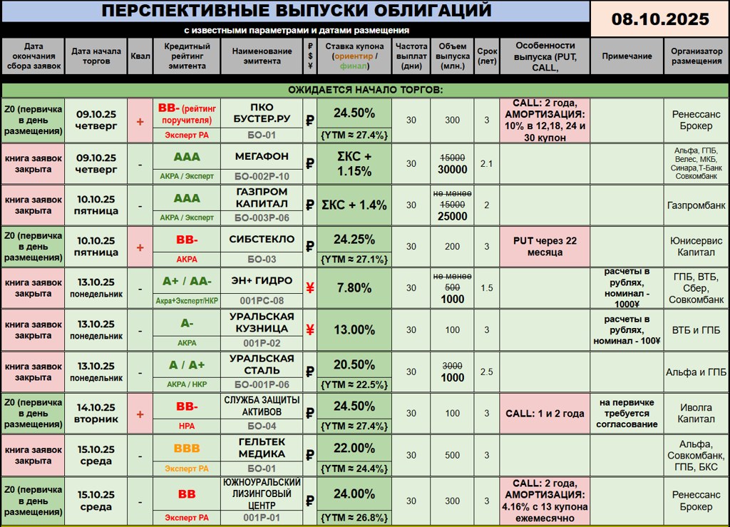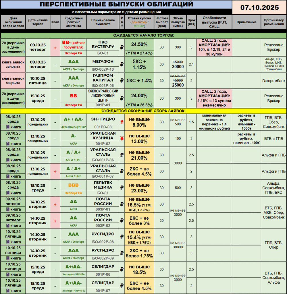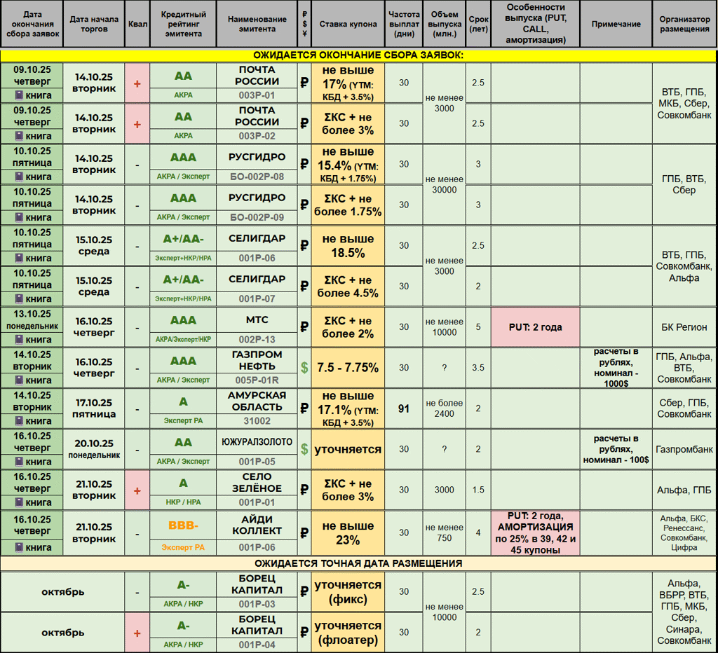🍁 Не менее волевое решение принимает СЛУЖБА ЗАЩИТЫ АКТИВОВ (🅱️🅱️➖) - датой сбора заявок и размещения такого же квальского выпуска, но БО-04, станет 14 октября. Параметры найдутся в прошлых публикациях или на картинке под пос...