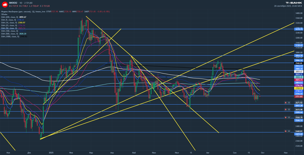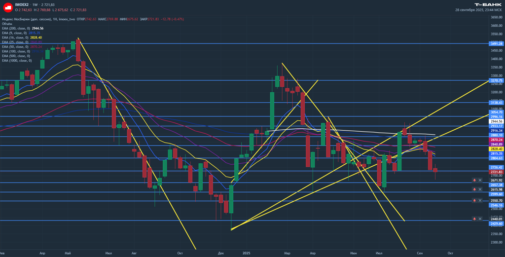 Российский фондовый рынок с середины августа находится в нисходящем тренде, но приближается к зоне значимых технических поддержек, где возможен значительный отскок.