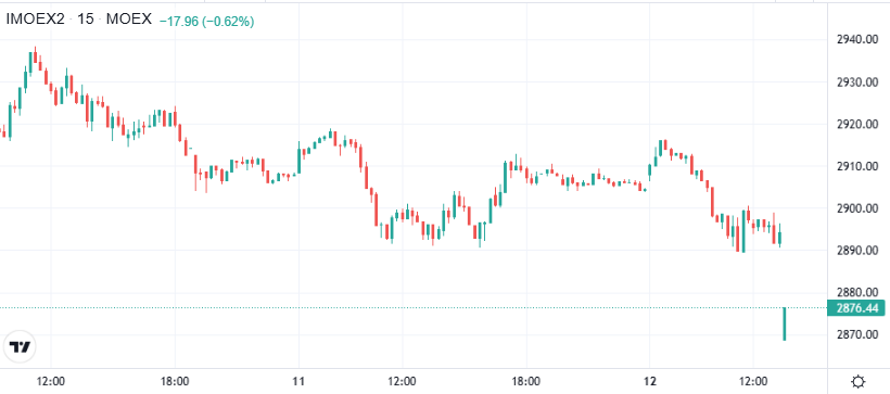 Индекс Мосбиржи ускорил снижение после решения ЦБ, с гэпом рванув вниз и сейчас теряя более 1%.