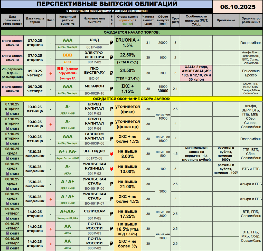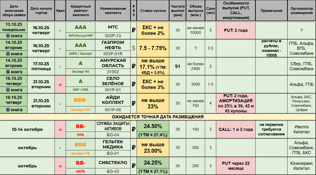 ➤ Сбор заявок - 13 октября, размещение 16-го;