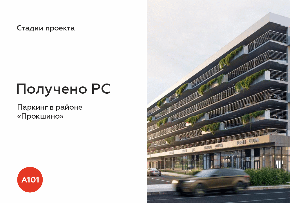 ГК «А101» получила разрешение на строительство семиэтажного паркинга в районе «Прокшино». Общая площадь объекта составит 19,6 тыс. кв. м, он будет рассчитан на 630 машино-мест размером от 13,3 до 16,6 кв. м.