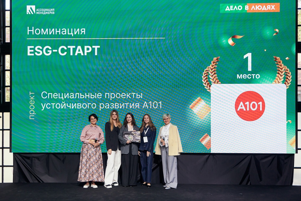 Группа компаний «А101» заняла первое место в номинации «ESG-старт» на XVIII всероссийском конкурсе «Дело в людях». Мероприятие проводится при поддержке Ассоциации менеджеров с 2008 года. В этом году на конкурс было представлено 126 проектов из самых разных отраслей экономики, включая ритейл, металлургию и финансовый сектор.