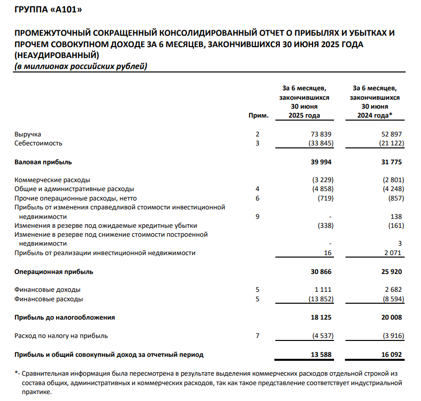 А101 - разбираем свежий отчет за полугодие 2025 года и перспективы
