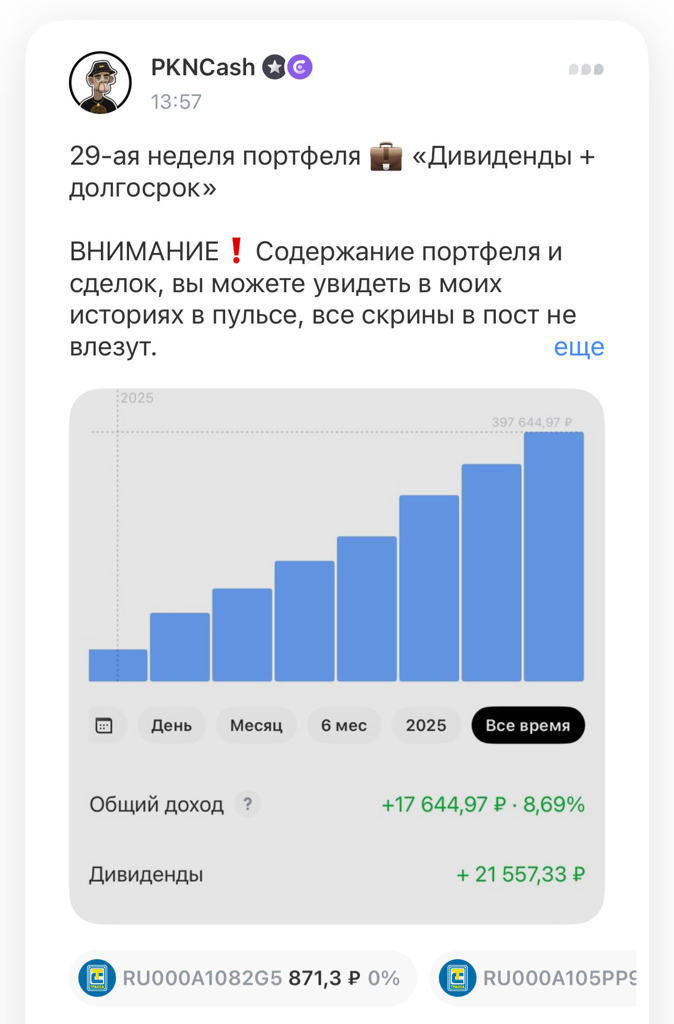 36 - ая неделя портфеля 💼 «Дивиденды + долгосрок»