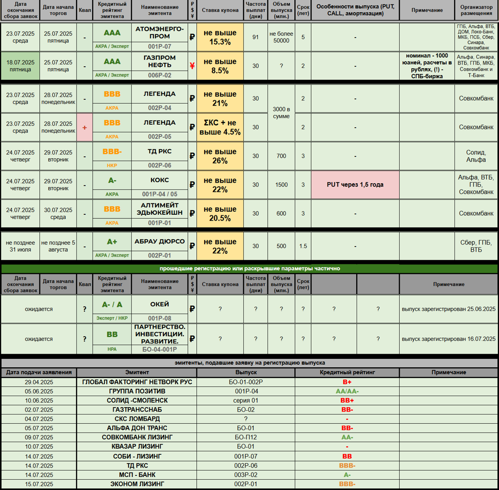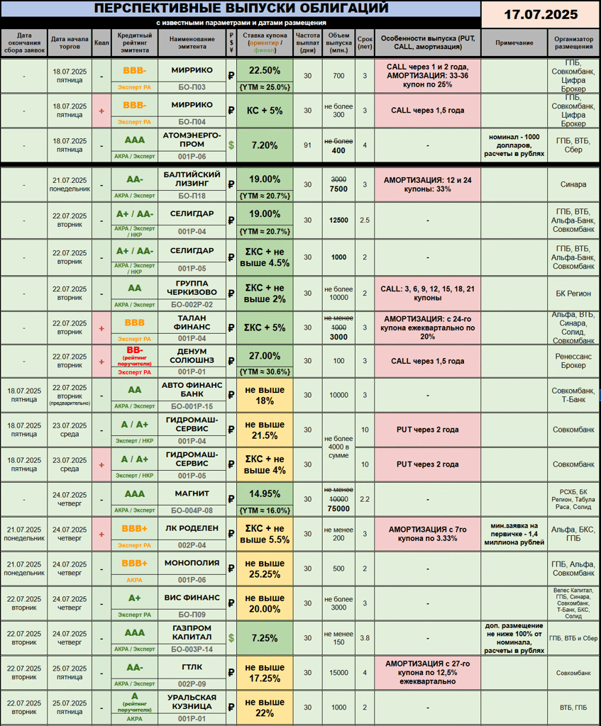 ОБЛИГАЦИОННЫЙ ВЕСТНИК 1️⃣7️⃣☀️0️⃣7️⃣☀️2️⃣0️⃣2️⃣5️⃣