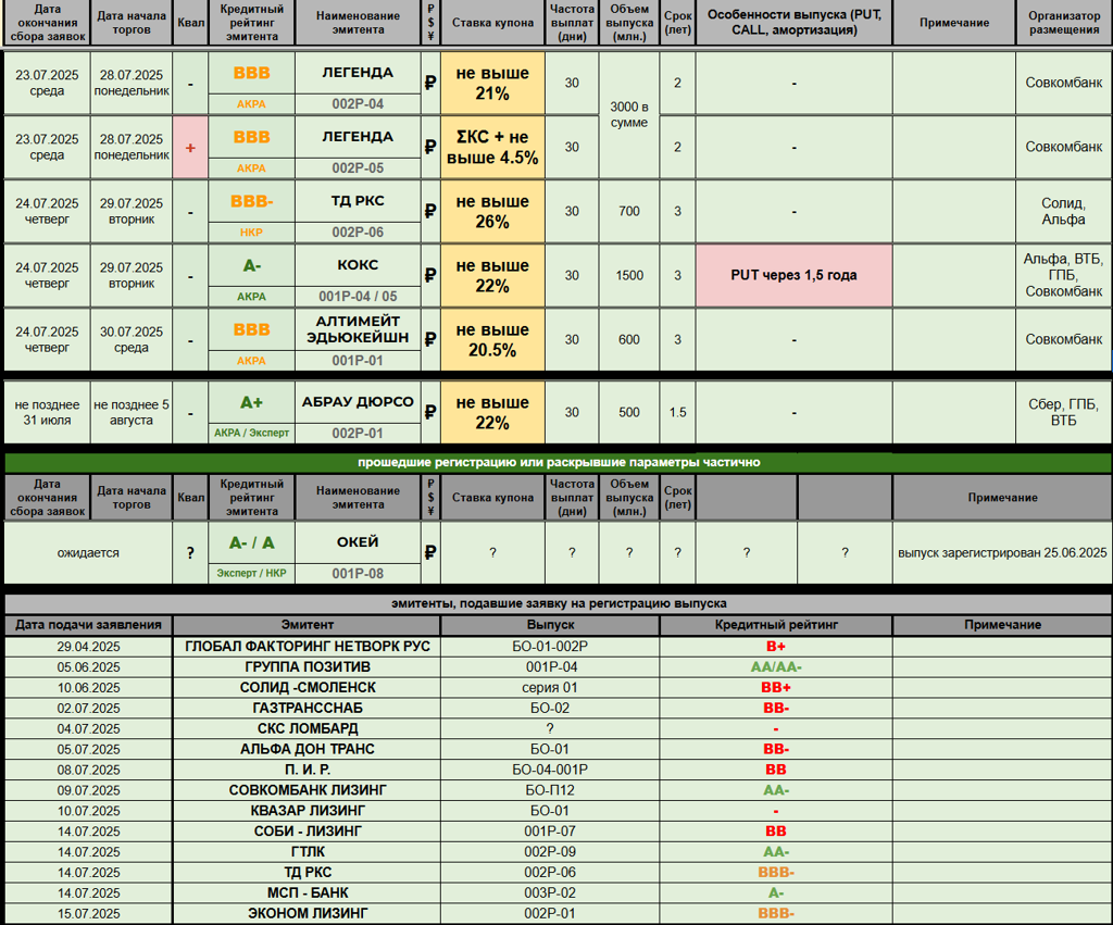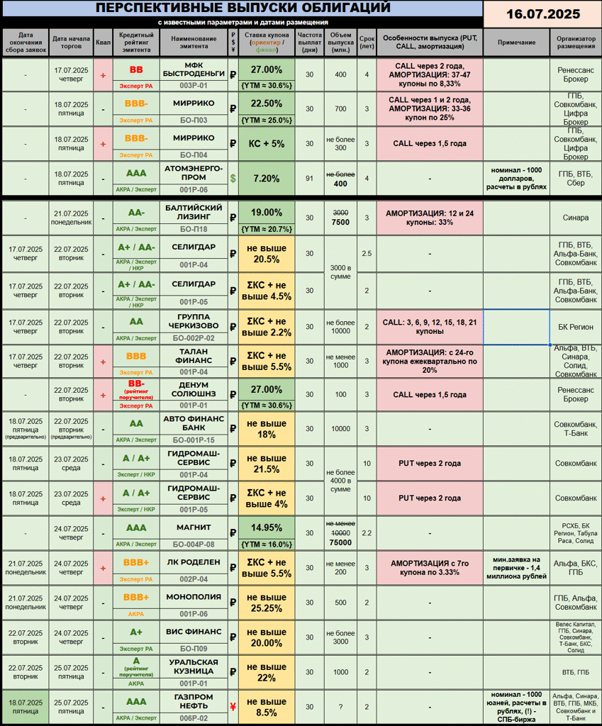 • Купон: не выше 25,25% годовых (YTM не выше 28,39% годовых)