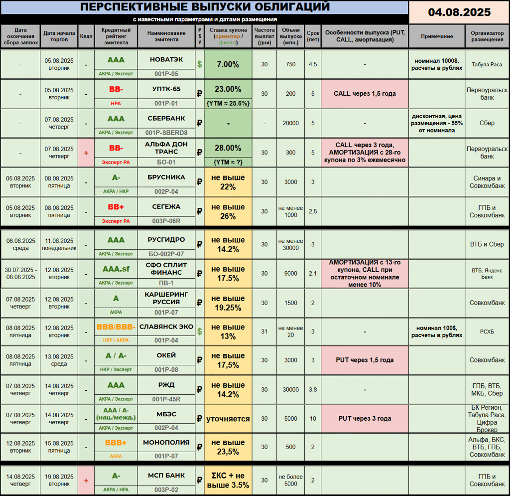 ОБЛИГАЦИОННЫЕ НОВИНКИ