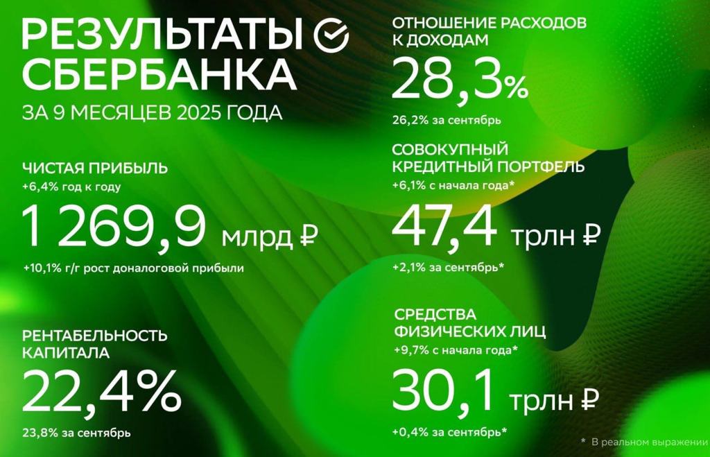 Сбербанк отчитался за сентябрь 2025 г. — снижение ставки помогает