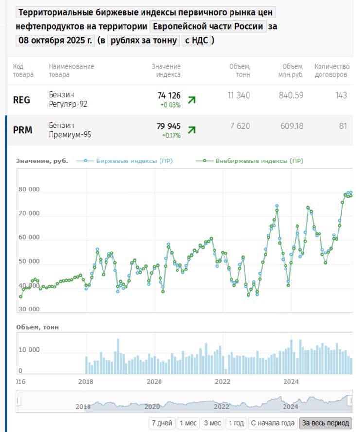 Итоги недели 06.10 — 10.10 🔴 Индекс ММВБ: -1.04% 🔴 Индекс RGBI: -0.69% 🔴 Юань/рубль: -1.83% 🟢 Золото: +6.41% 🔴 Нефть: -4.09% ⭕ КОРОТКО О ГЛАВНОМ • ММВБ: Очередная неделя снижения. Вроде пытались сделать кульминацию. но судя по всему, шансы уйти ниже еще есть. • RGBI: Уровень в 113 пока удерживается.. • ИНФЛЯЦИЯ По данным Росстата, за неделю рост потребительских цен ускорился до 0,23% с 0,13% неделей ранее. Инфляция в годовом выражении выросла с 8,0 до 8,1%. С начала 2025 ...