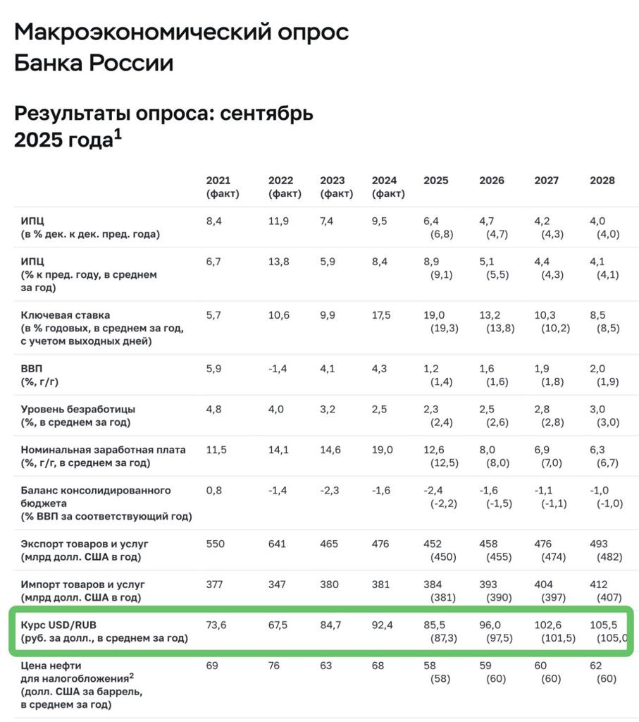 По опросам ЦБ аналитики ждут средний курс $USD000SMALL 87,3₽ Результаты макроэкономического опроса: июль 2025 года: https://cbr.ru/statistics/ddkp/mo_br/ Как менялись прогнозы, можно увидеть на первом скрине. Средний курс по этому году (второй скрин) сейчас 85,75₽. При текущем курсе ~78₽, значит аналитики ждут повышения во втором полугодии в район 90₽, но не ожидают сильной девальвации. $USDRUBF $SiU5 $SiZ5 Вера в доллар одна из самых сильных в нашей стране, учитывая опыт 90-х и 201...