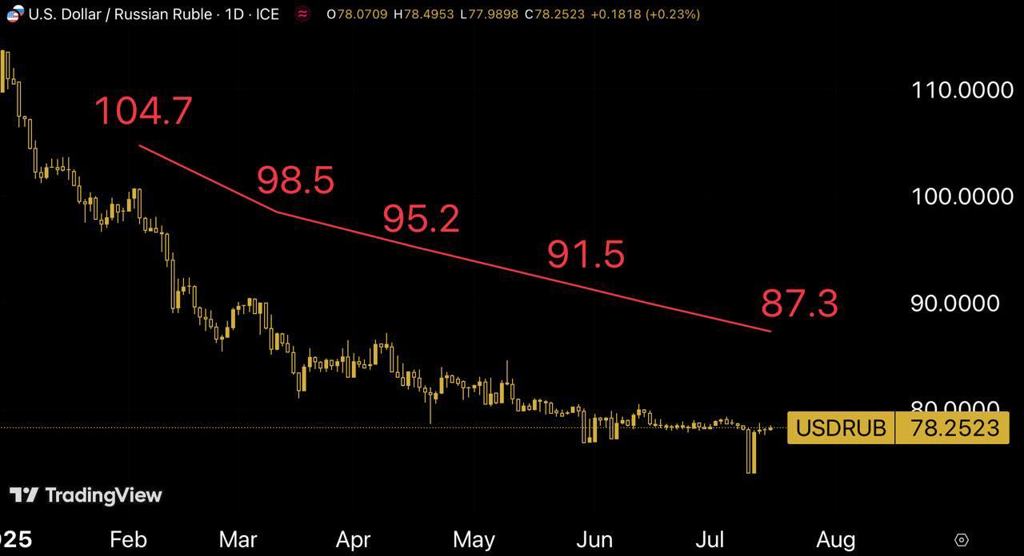 ЦБ РФ опустил ключевую ставку до 18% и готов продолжать снижение. Нефть после недельной эскалации Израиля с Ираном остаётся в узком боковике и не поддерживает рубль ростом. Вводятся новые вторичные санкции с ускоренной реализацией, а бюджет РФ — дефицитный. Эксперты всё чаще говорят о неизбежности ослабления рубля. 📌 Всё это формирует набор фундаментальных и технических причин, чтобы рубль начал устойчивое движение к ослаблению. 📉 Кратко по ключевым факторам: 🟠Снижение ставки = снижение при...