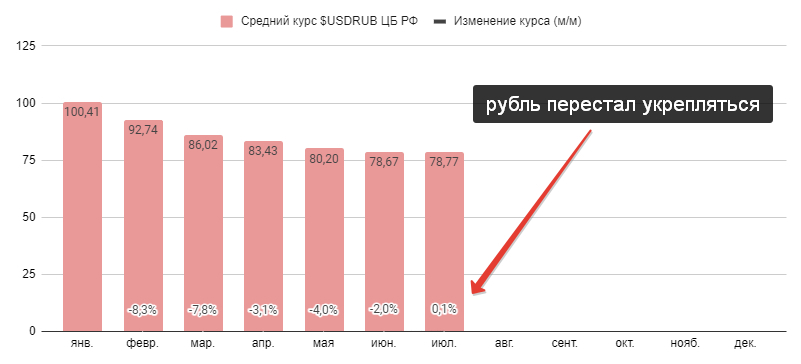 Минфин провёл аукцион ОФЗ, предложив инвесторам два выпуска. При его проведении индекс RGBI находился выше 119 пунктов, с учётом дефляции 2 недели подряд индекс остался на уровне 119 пунктов (геополитика вмешалась): 🔔 По данным Росстата, за период с 22 по 28 июля ИПЦ снизился на -0,05% (прошлые недели — -0,05%, 0,02%), с начала месяца 0,71%, с начала года — 4,51% (годовая — 9,02%). В июле 2024 г. инфляция составила 1,14%, при сегодняшней динамике мы выйдем на 1/2 данных цифр (снижение инфляци...