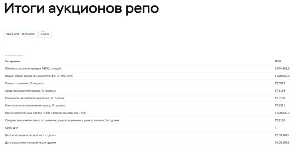 Индекс RGBI падает. Минфин провёл аукцион ОФЗ, предложив инвесторам два выпуска. При его проведении индекс RGBI находился выше 118 пунктов, с учётом меньшего снижения ставки, чем ожидали аналитики и пробуксовки в геополитике, индекс продолжил снижаться — 117,12 пункта: 🔔 По данным Росстата, за период с 9 по 15 сентября ИПЦ составил 0,04% (прошлые недели — 0,10%, -0,08%), с начала месяца 0,13%, с начала года — 4,08% (годовая — 8,10%). В сентябре 2024 г. инфляция составила 0,48%, при сегодняшн...