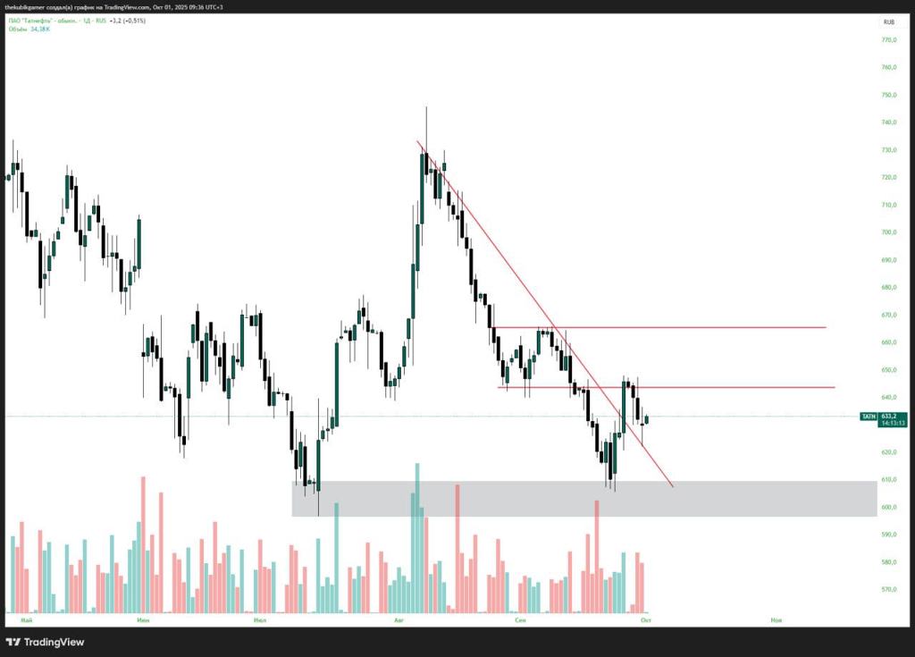 $TATN кто что думает ? моя версия идем вниз до 600-595, далее боковичок пока ждем роста.