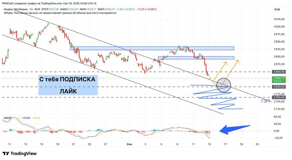 В пятницу ЦБ РФ понизил ставку всего 1 пт, а большая часть ждали 16% КС. На этом фоне рынок упал под 2850, плюс подвезли новости по новым санкциям и тд. В данный момент торгуемся на 2825