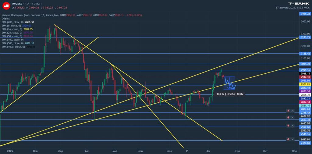1️⃣ Рынок потрясло от идеи Минфина поднять НДС до 22%. Индекс Мосбиржи снизился на 0,8% – пике не прекращается с заседания ЦБ 12 сентября. С 2900 ушли вниз до 2700. $MMZ5
