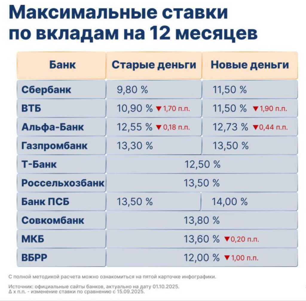 Максимальные ставки по депозитам на 12 месяцев уверенно падают. Лидер антирейтинга $SBER , который на год под «старые деньги» дает меньше 10%. Рядом идет $VTBR . Банки, которые замыкают ТОП-10 в списке могут предложить 13,5%-14%. $SVCB $CBOM «Депозитная карусель» сосредоточена в основном на коротких предложениях. Многие инвесторы перекладывают деньги на три месяца из банка в банк под более привлекательные условия для новых клиентов. Другое дело, почему бы не купить ОФЗ с погашением че...