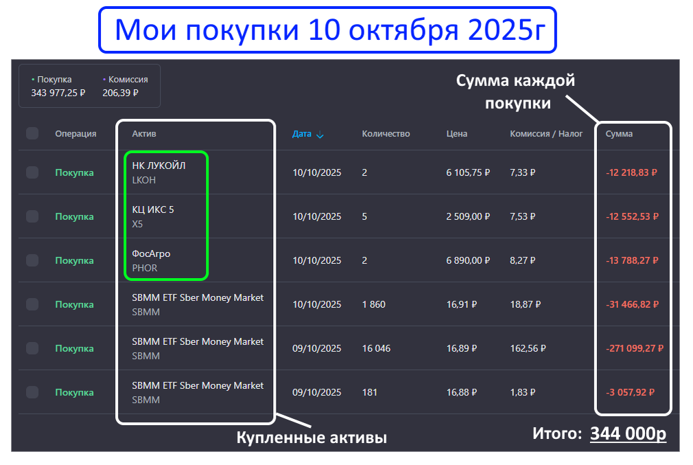 Сегодня 10 октября, я получил зарплату💰 и сразу же инвестировал часть дохода на фондовый рынок. Такой тактике я придерживаюсь уже почти 6 лет - дважды в месяц с ЗП и аванса совершаю покупки❗️