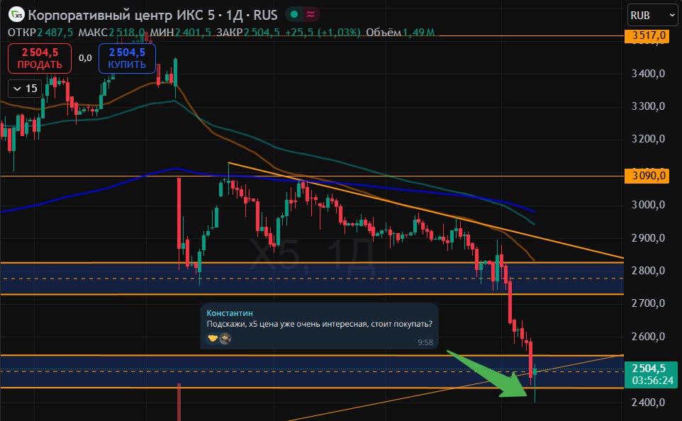 Популярная у физиков за счет «заслуг прошлых лет» Пятерочка, уверенно пробила свой восходящий с 2022 года тренд вниз (серая линия).