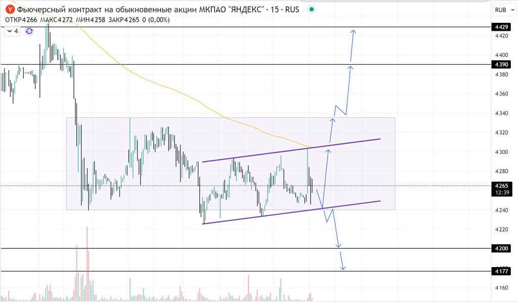 💡MIX: диапазон от точки 5 по вульфу. Лонг от теста границы диапазона. Цели: МА200; точка 6 по вульфу Отмена — возврат внутрь диапазона. 💡Yandex (фьюч): цена внутри диапазона, формирует канал. Лонг можно смотреть в случае хорошего отбоя от нижней границы канала. Цели: верхняя граница канала (или МА200); верхняя граница диапазона; 4390; 4429. Для шорта смотрим пробой и тест нижней границы канала и диапазона. Цели: 4200; 4177. $MXU5 $YDU5